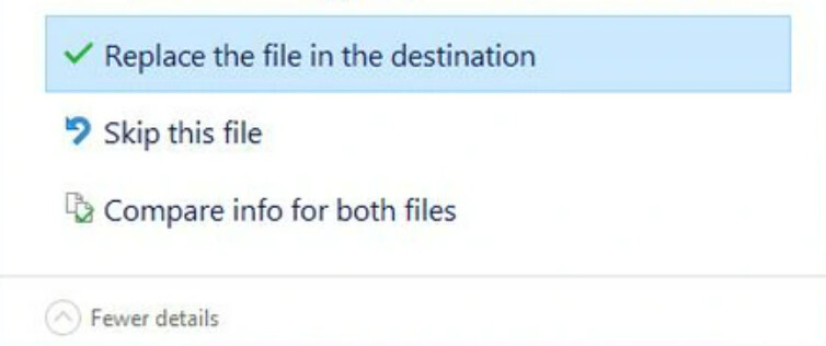 The dialogue box also includes the “Replace the file in the destination” option, which you can choose if you do not want the file in the destination, and selecting it would, of course, delete the file. The “Skip this file” option would simply avoid copying or moving the source file to the destination folder.