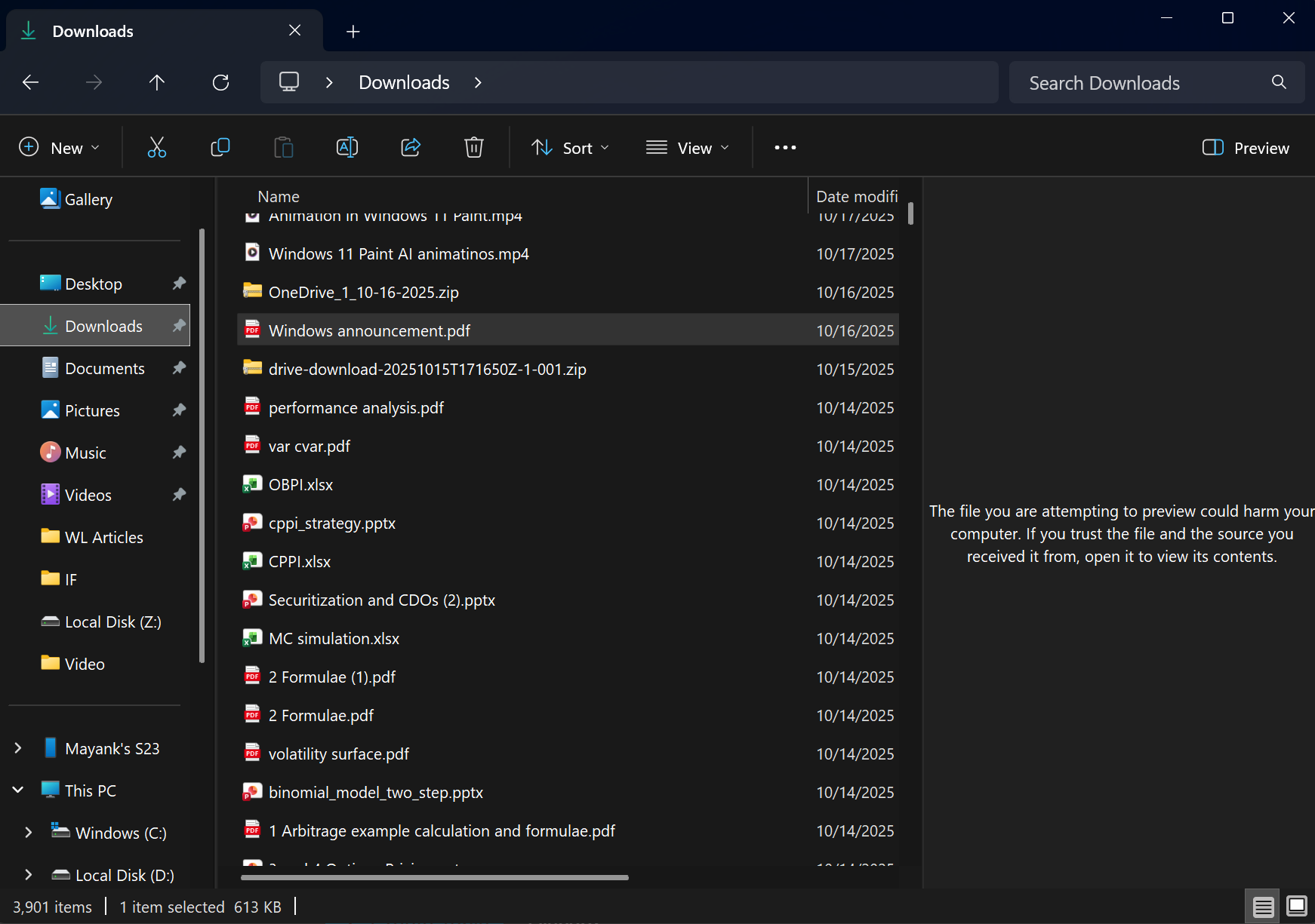 If you try to preview the files, let’s say, a PDF, it’ll display a security alert: The file you are attempting to preview could harm your computer. If you trust the file and the source you recieved it from, open it to view its contents.